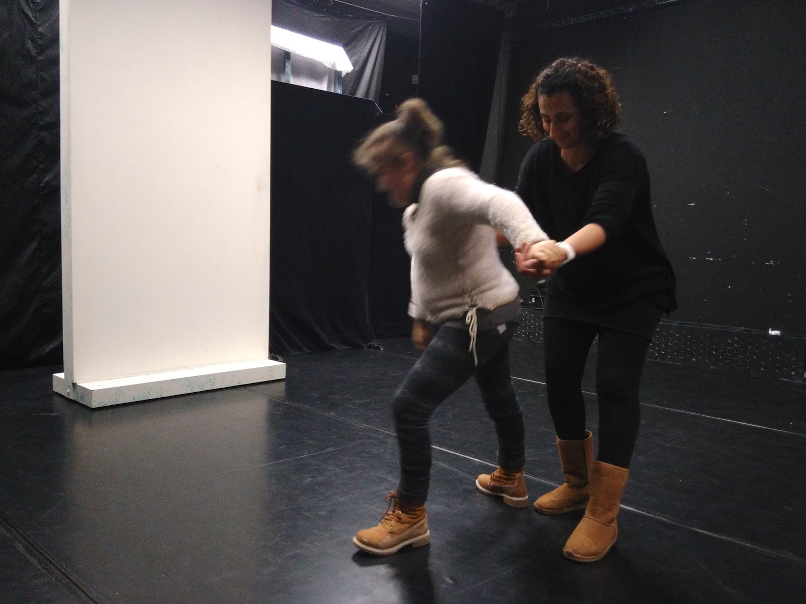 Puis les papiers disparaissent et le "faire semblant "revient en force . Les acteurs sont plus précis sur leur expression, et l'on voit chez tous , le choix de l'endroit ou le pieds est posé, le chemin dessiné, le déséquilibre , le rattrapage de l'équilibre.